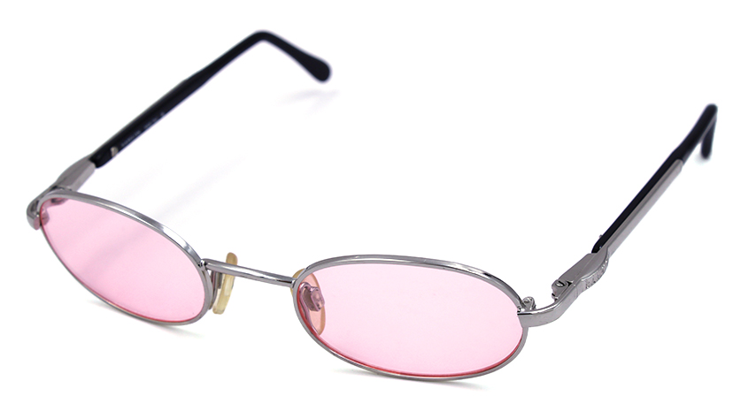 Kids metal frame in silver with pink lenses.