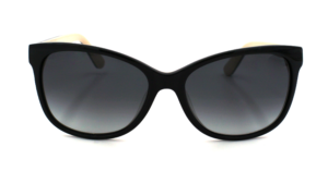 Acetate frame in black with beige and black gradient lenses.