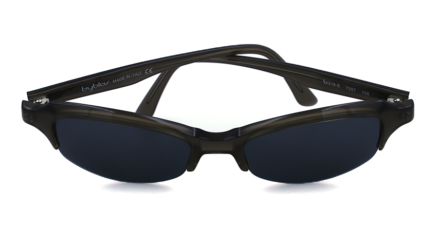 Acetate semi-rimless frame in gray with black lenses.