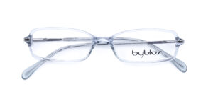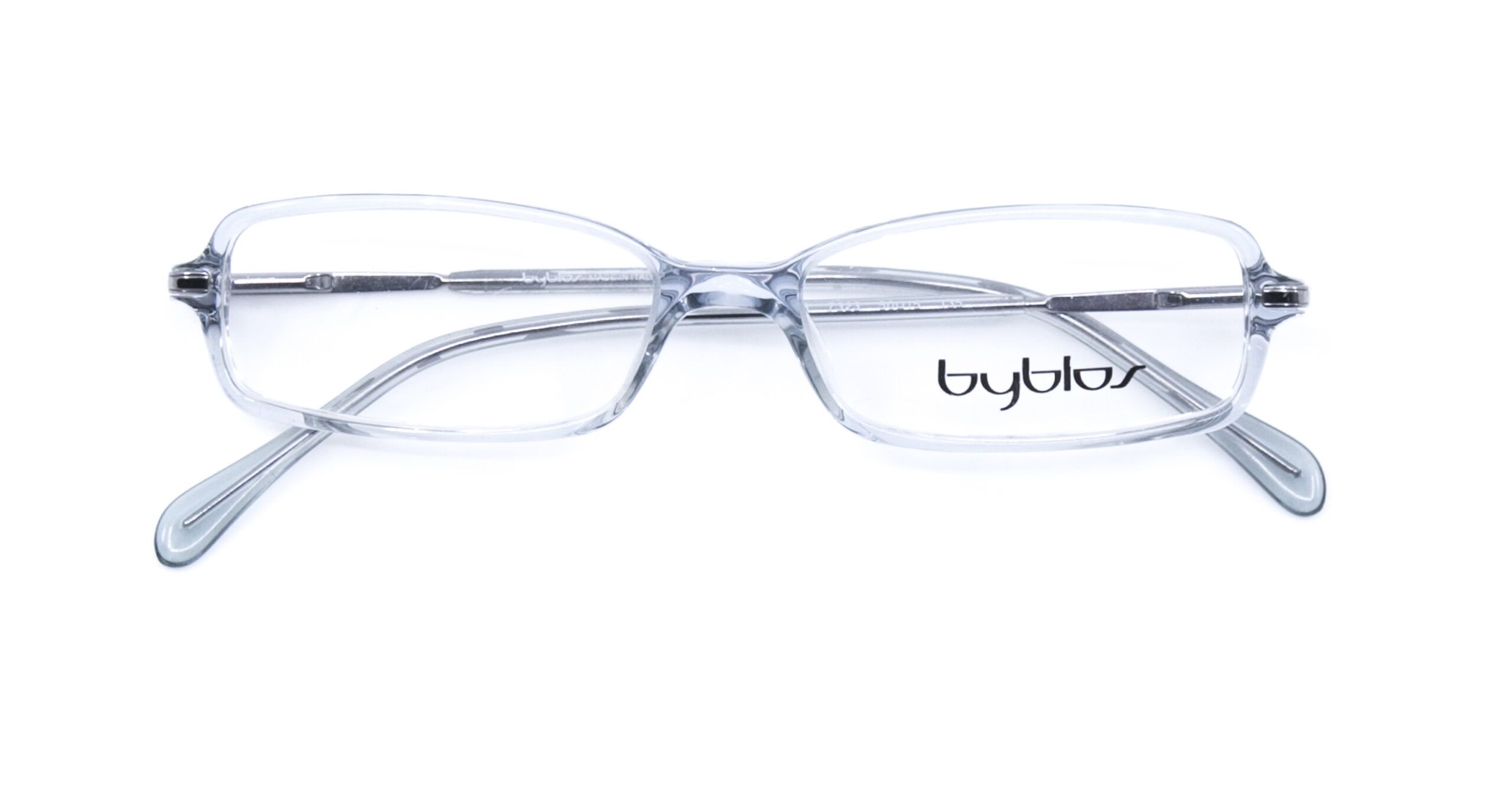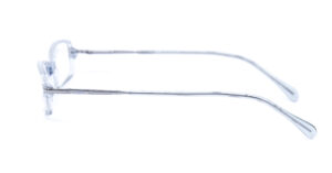Κοκάλινος σκελετός σε διάφανο γαλάζιο με ασημί μεταλλικούς βραχίονες.