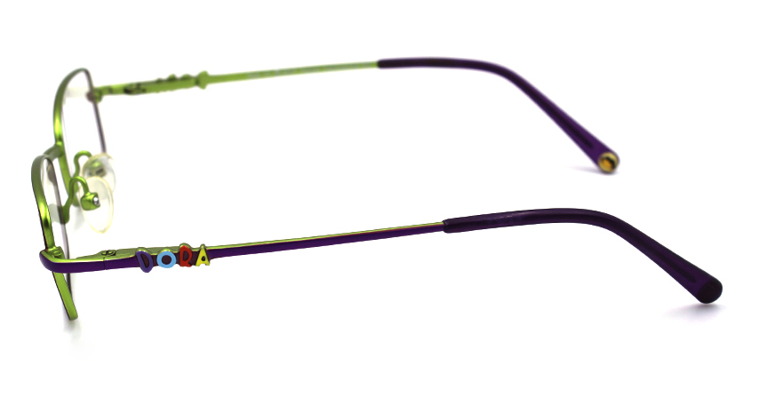 Kids metal frame in purple with green.