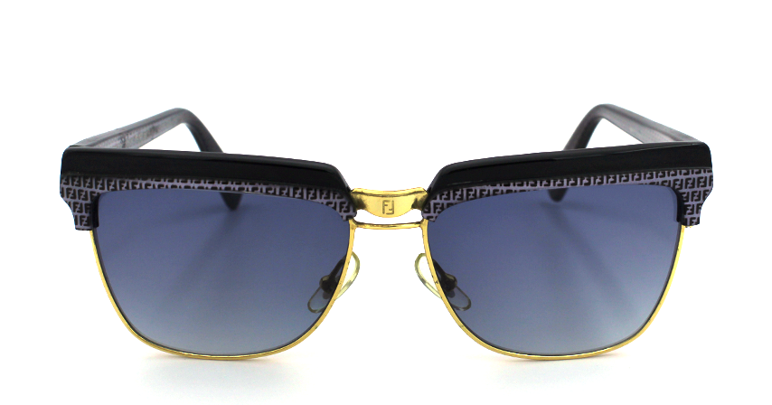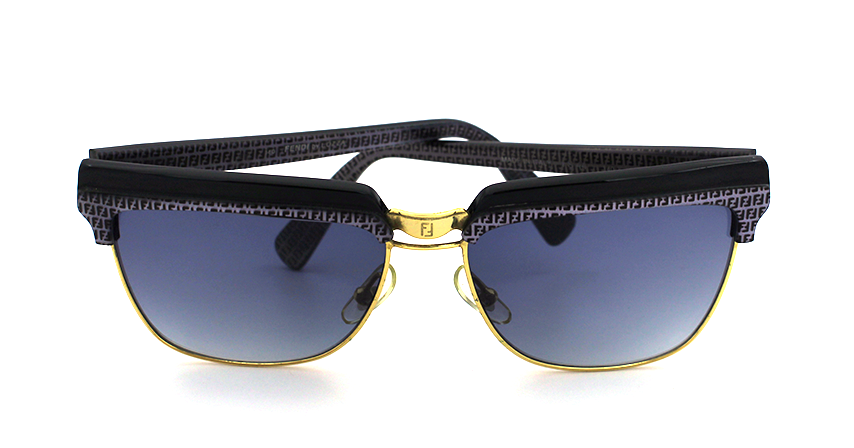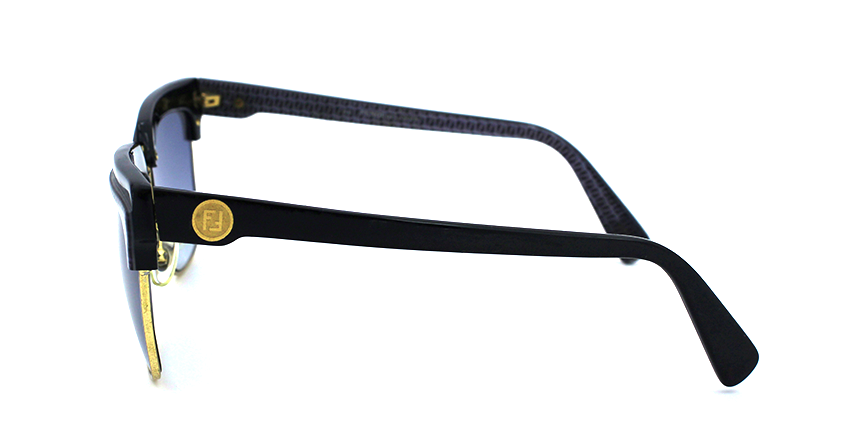 Vintage acetate frame in black with gray and gold metal and gray gradient lenses.