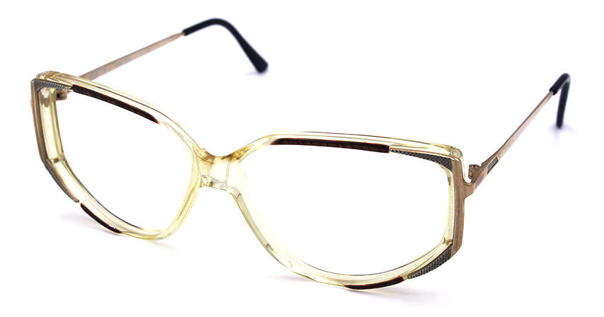 Κοκάλινος σκελετός σε διάφανο με καφέ και χρυσούς μεταλλικούς βραχίονες.