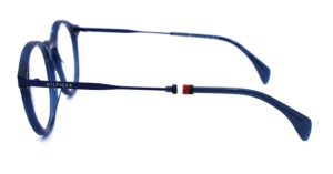 Κοκάλινος σκελετός σε μπλε με μεταλλικούς βραχίονες.