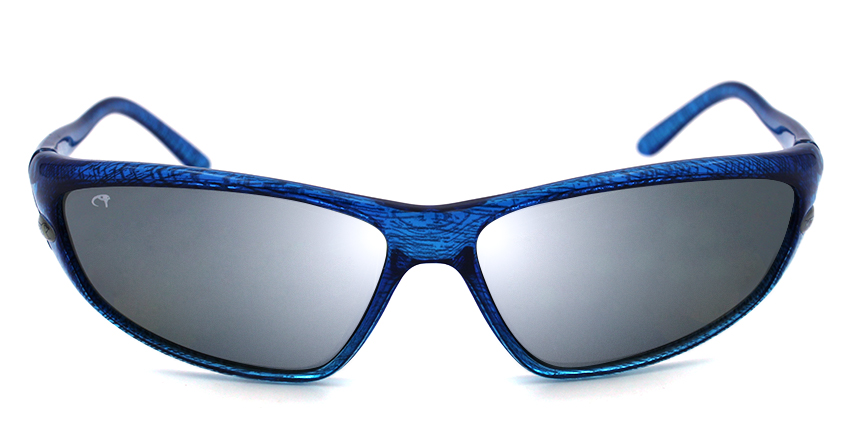 Κοκάλινος σκελετός σε μπλε με φακούς σε καθρέφτη.